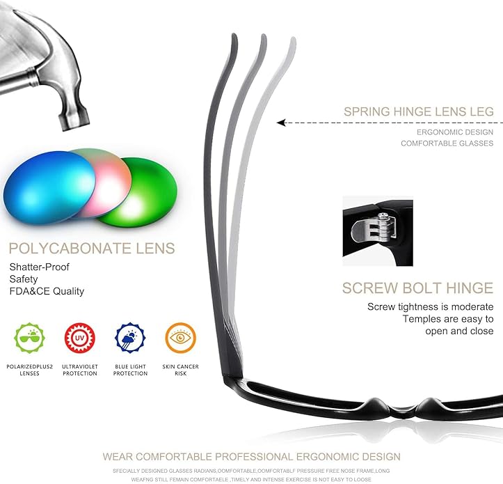 - HD PROTECTION LENS: FEIDUSUN anti glare HD polarized retro sunglasses can effectively reduce the glare reflected from roads, water bodies, snow, and other water surfaces, restoring true colors and improving visual comfort.Eliminate reflected light and scattered light and protect eyes perfectly. Wearing black sunglasses for women has never been more relaxing, secure and comfortable than now